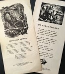 * Jeugdwerk uit de oorlogsjaren van de latere vertaler van The Lord of the Rings, Max Schuchart (1920-2005). De Jong 746. Met het kaartje van de grote clandestiene-drukkenverzamelaar A.J. Eschauzier, die dit boekje kocht voor drie gulden in 1959, bij de Haagse boekhandel Frastovo van het echtpaar Fraase Storm-Volder.