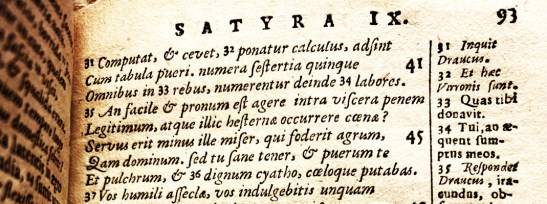 One Dutchman inventively represents Juvenal’s intentions, while another tries to make the most offensive passages seem more innocent. For example, in the ninth Satire, verse 44 et seq., the male prostitute Naevolus says of his greedy client: